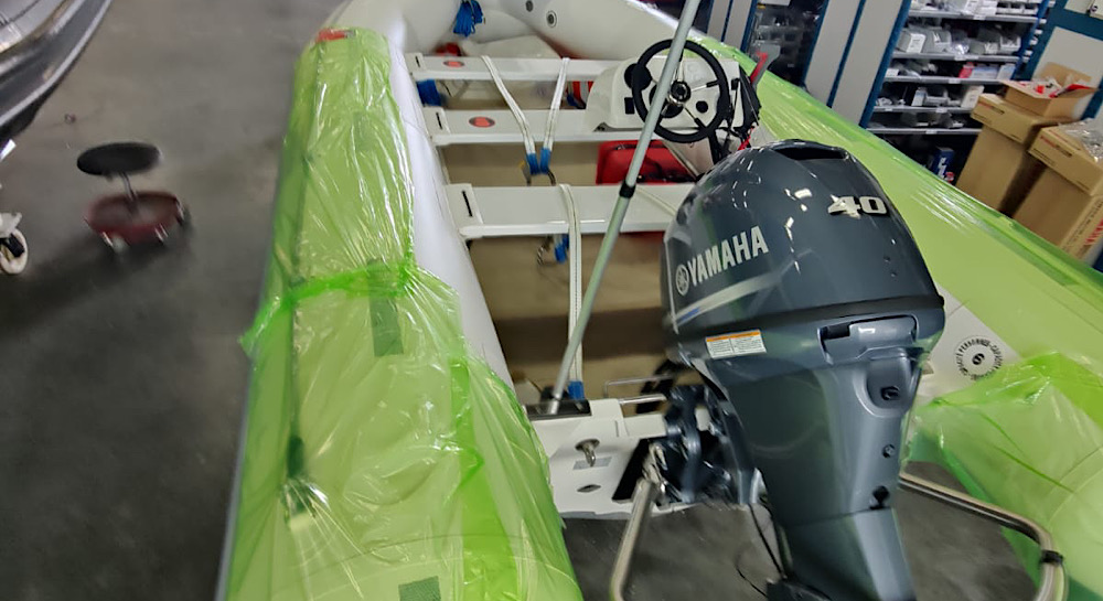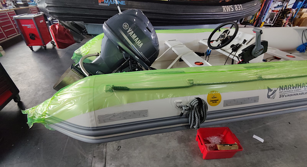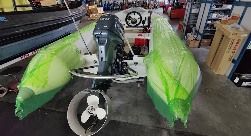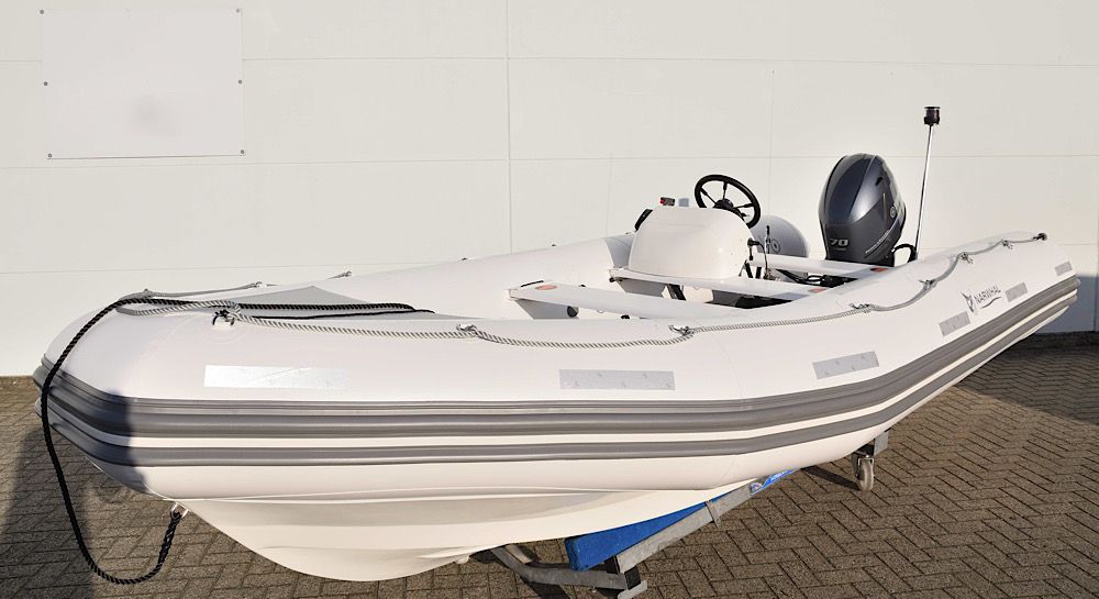 There is enough room on deck to place the approved stretcher to transport an injured person. The boat has a maximum capacity for 6 persons and a bow locker for storage. Available in orange and white. The white yacht version comes with an orange cover set for compliance with MCA SOLAS/MED requirements.