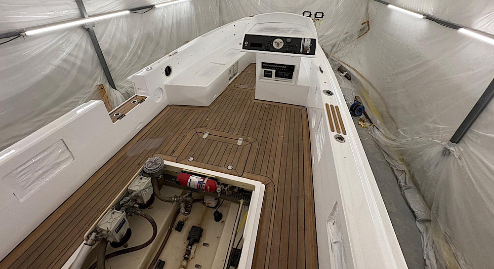 Our 6.5m owners tender refit is well underway with all the paintworks now complete. Engine and drive installation next week along with all new fixtures and fittings.